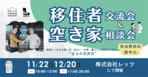 12月20日(土)に【第二回】移住者交流会&空き家相談会を開催いたしますので