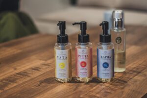 アーユルヴェーダの考え方をベースにした植物オイルを使い、今のあなたに合う香りを選ぶところから始まります。